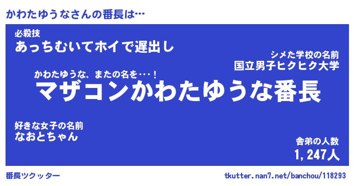 | 肩書あだ名 | 『かわたゆうな店長』『かわたゆうな担任』 |