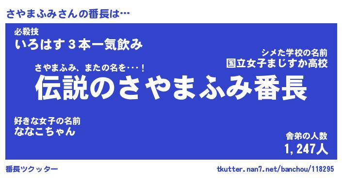 | 伝説のあだ名 | 『伝説のスナイパーさやまふみ』 |