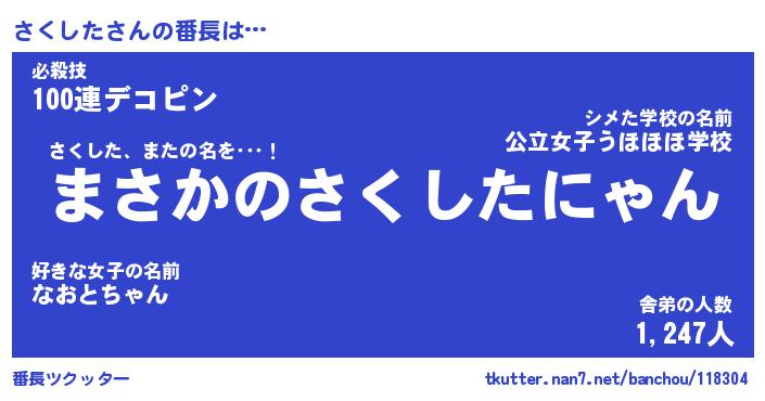 | 伝説のあだ名 | 『伝説のスナイパーさくした』 |