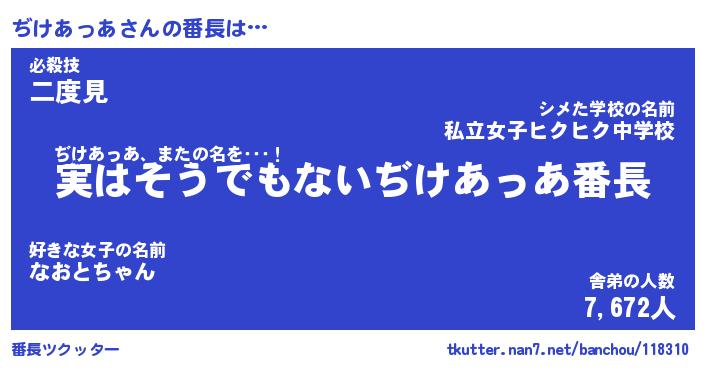 | 2回繰り返すあだ名 | 『ぢけぢけ』『ぢぢけけ』『ぬめぬめ』 |