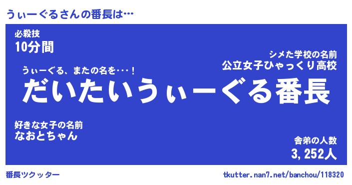 | 肩書あだ名 | 『うぃーぐる店長』『うぃーぐる大統領』 |