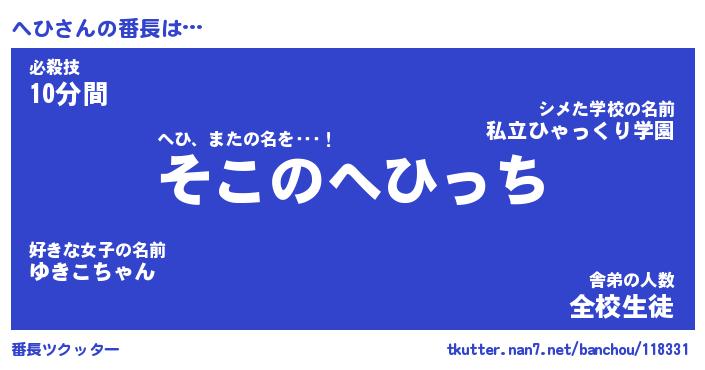 | ヘコむあだ名 | 『へひもー』『酢こんぶ』『へひ(笑)』 |
