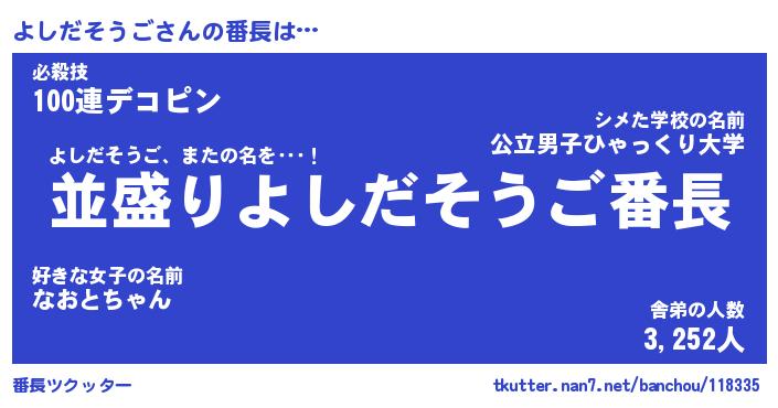 | 伝説のあだ名 | 『不死鳥のスナイパーよしだそうご』 |