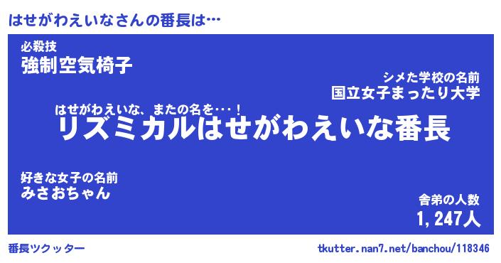 | 2回繰り返すあだ名 | 『はせはせ』『ははせせ』『げらげら』 |