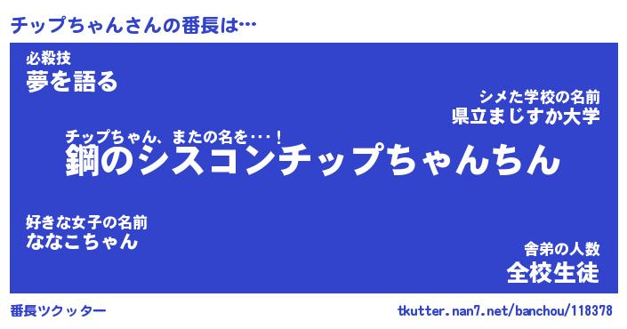 | 肩書あだ名 | 『チップちゃん社長』『チップちゃん班長』 |