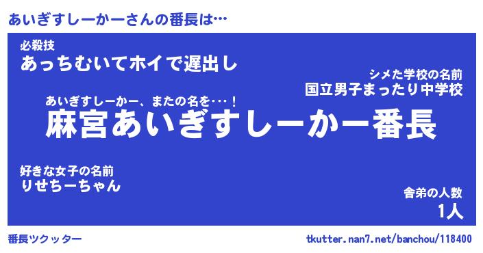 | 肩書あだ名 | 『あいぎすしーかー社長』 |