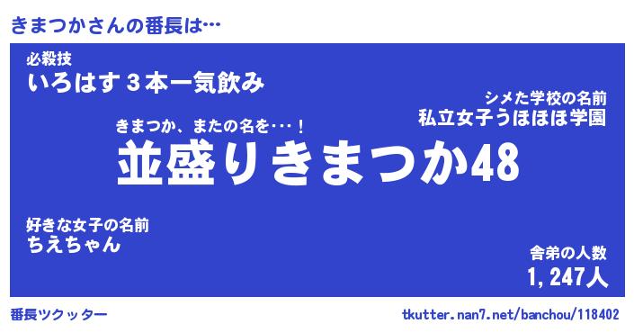 | 意味不明あだ名 | 『ペロリンきまつか』『永久保存きまつか』 |