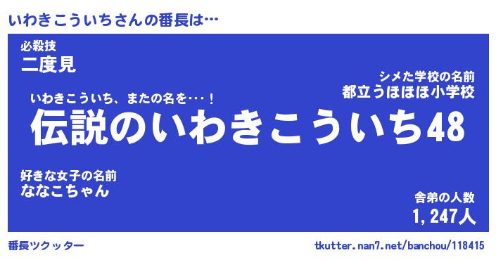 | 伝説のあだ名 | 『伝説のスナイパーいわきこういち』 |