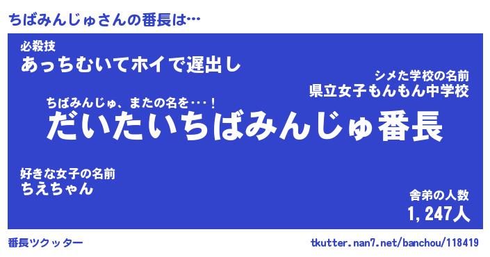 | ヒーロー風カッコイイあだ名 | 『スーパーチバミンジュ』『銀牙騎士チバ』 |