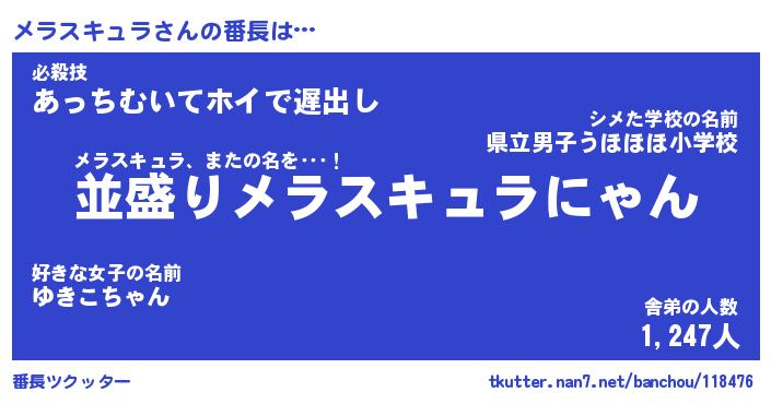 | ヒーロー風カッコイイあだ名 | 『スーパーメラスキュラ』『銀牙騎士メラ』 |