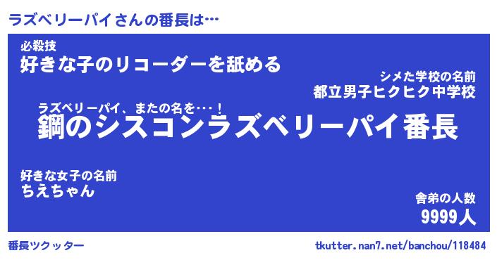 | 伝説のあだ名 | 『封印されしスナイパーラズベリーパイ』 |