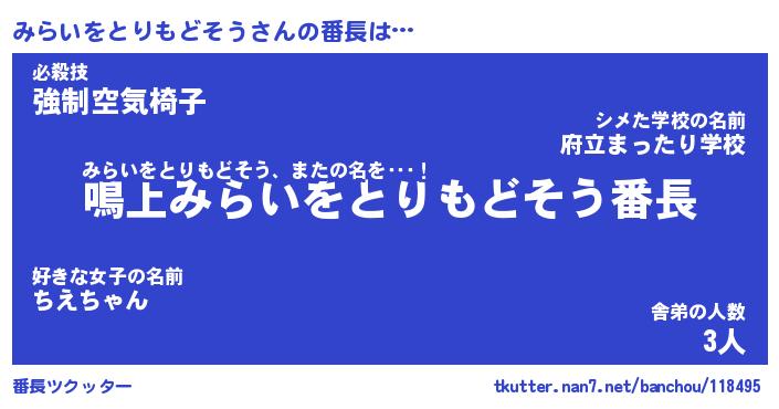 | ヘコむあだ名 | 『みらっふぃ~』『つくし』『みらお』 |
