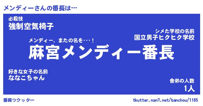 | ヒーロー風カッコイイあだ名 | 『スーパーメンディー』『炎刃騎士メン』 |