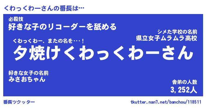 | 伝説のあだ名 | 『封印されしスナイパーくわっくわー』 |