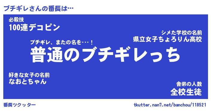 | ヘコむあだ名 | 『ブチにー』『なまこ酢』『ブチっぺ』 |