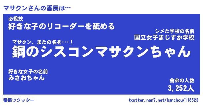 | 意味不明あだ名 | 『ペロリンマサクン』『永久保存マサクン』 |