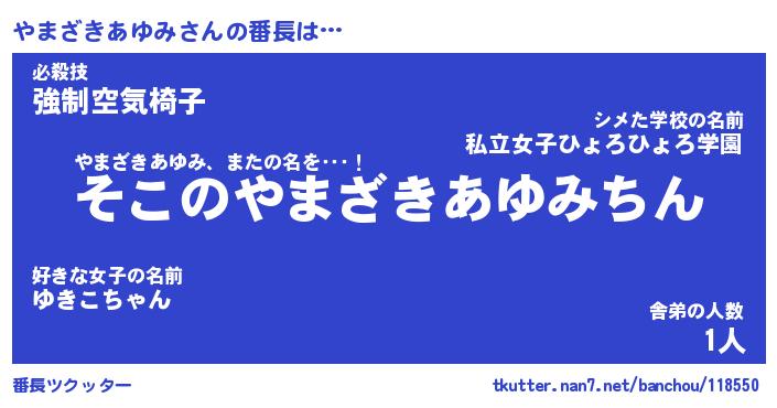 | 男性向けラノベタイトル風あだ名 | 『やまざきあゆみの憂鬱』 |