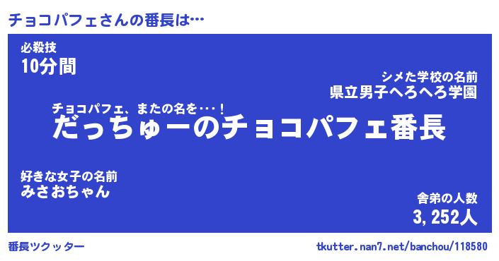 | 肩書あだ名 | 『チョコパフェ店長』『チョコパフェ塾長』 |