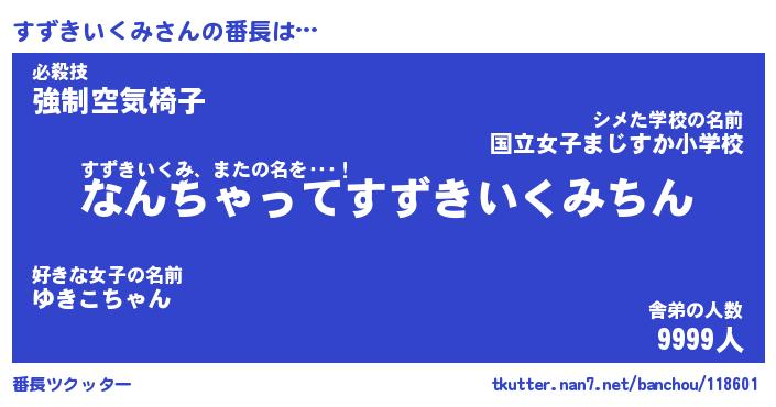 | ポケモン風あだ名 | 『スズチュウ』『スズキダネ』 |