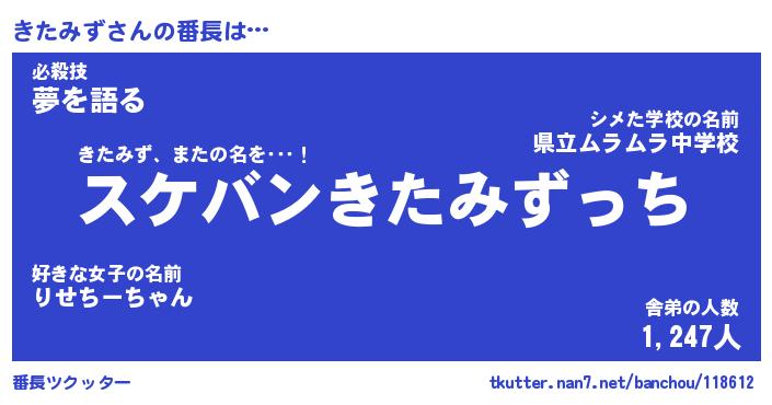 | ヒーロー風カッコイイあだ名 | 『スーパーキタミズ』『幻影騎士キタ』 |