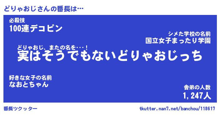 | 肩書あだ名 | 『どりゃおじ社長令嬢』『どりゃおじ団長』 |