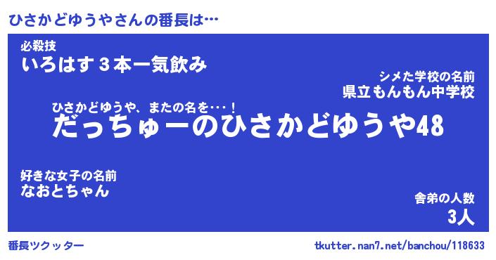 | 男性向けラノベタイトル風あだ名 | 『ひさかどゆうやの憂鬱』 |