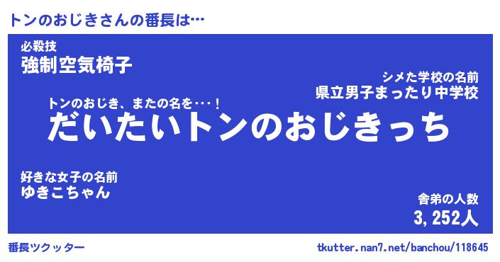 | ヒーロー風カッコイイあだ名 | 『スーパートンノオジキ』『暗黒騎士トン』 |