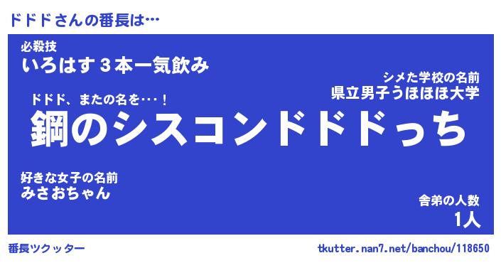 | ヘコむあだ名 | 『ドドにゅー』『なまこ酢』 |