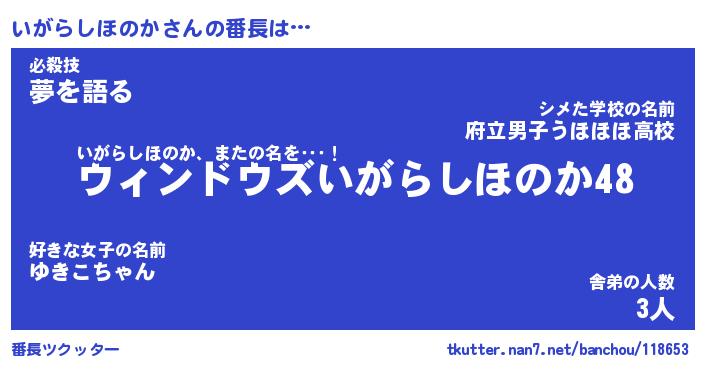 | 女子向けラノベタイトル風あだ名 | 『(仮)いがらしほのかのやんごとなき事情』 |