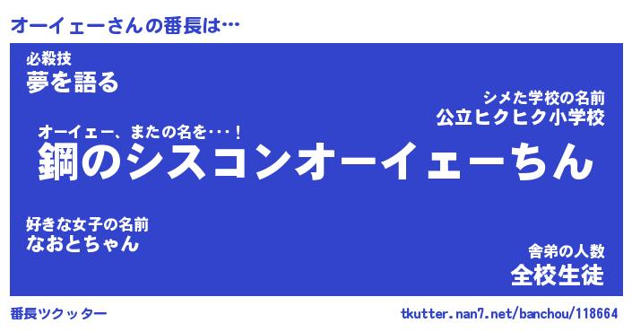 | ヒーロー風カッコイイあだ名 | 『スーパーオーイェー』『暗黒騎士オー』 |