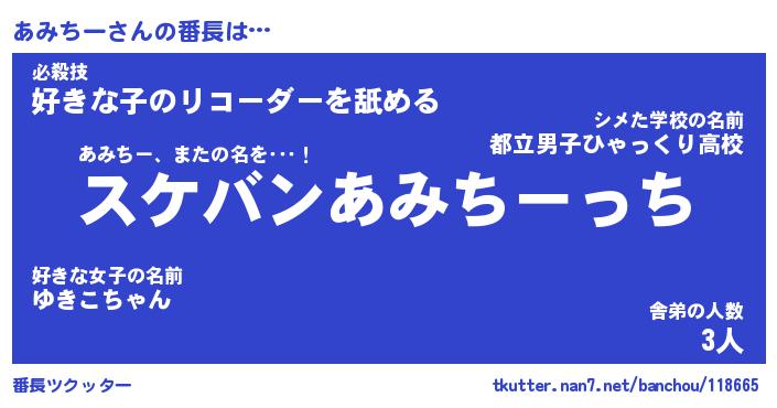 | 意味不明あだ名 | 『ペロリンあみちー』『永久保存あみちー』 |