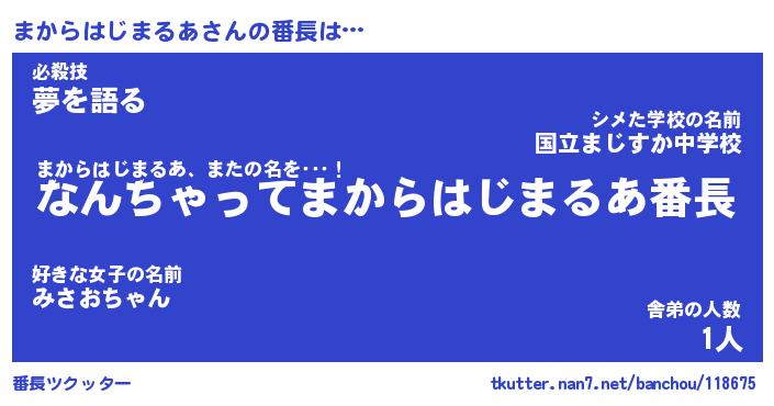 | ヒーロー風カッコイイあだ名 | 『スーパーマカラハジマルア』 |