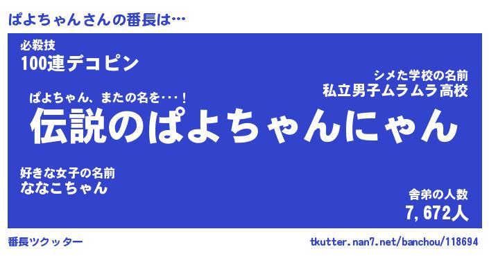 | ヘコむあだ名 | 『ぱよにー』『つくし』『ぱよぷりん』 |