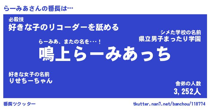 | 肩書あだ名 | 『らーみあ社長』『らーみあ国家主席』 |