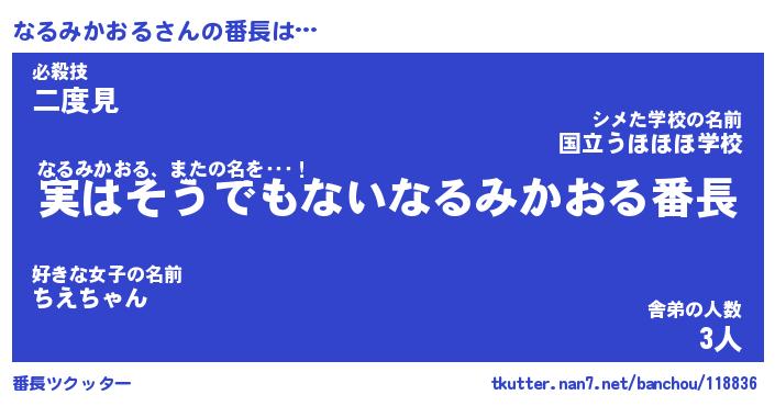 | 2回繰り返すあだ名 | 『なるなる』『ななるる』『おろおろ』 |