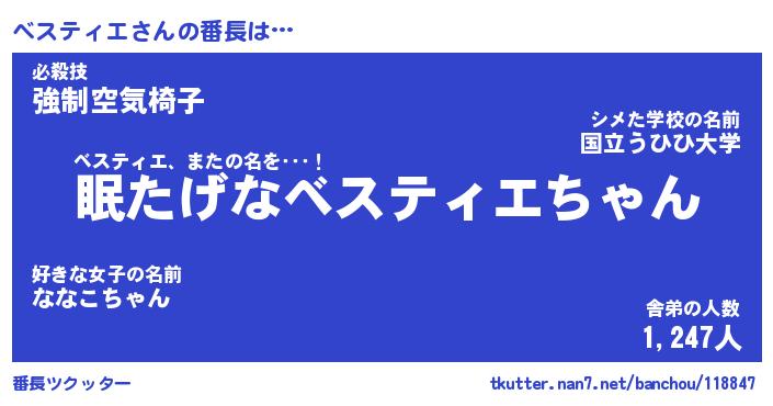 | ポケモン風あだ名 | 『ベスチュウ』『ベステダネ』 |