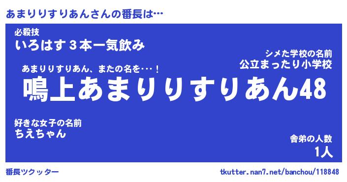 | 伝説のあだ名 | 『封印されしスナイパーあまりりすりあん』 |