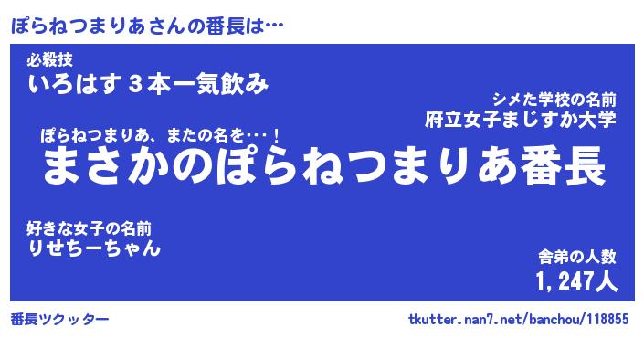 | ヘコむあだ名 | 『ぽらにゅー』『なまこ酢』 |