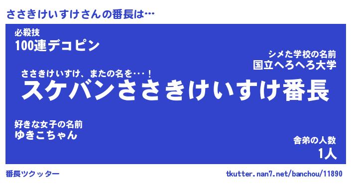 | ヒーロー風カッコイイあだ名 | 『スーパーササキケイスケ』 |