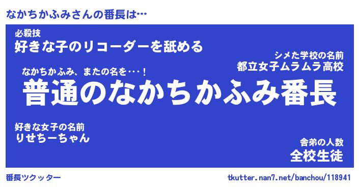 | ヒーロー風カッコイイあだ名 | 『スーパーナカチカフミ』『暗黒騎士ナカ』 |