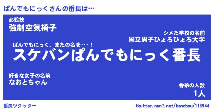 | 伝説のあだ名 | 『不死鳥のスナイパーぱんでもにっく』 |