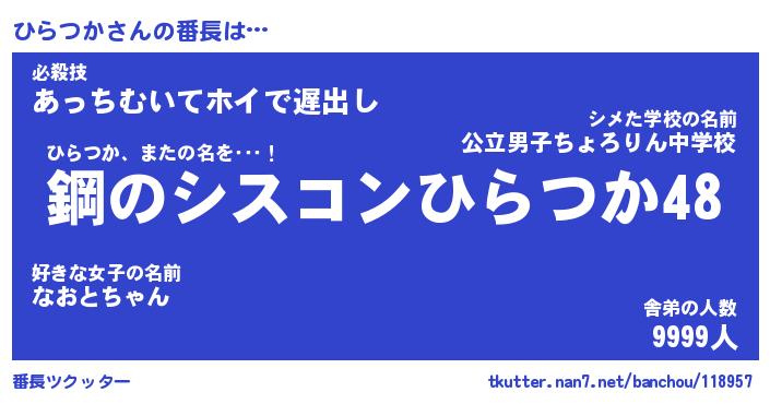| ヘコむあだ名 | 『ひらもー』『なまこ酢』『ひらっぺ』 |