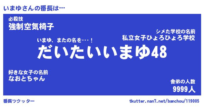| ヒーロー風カッコイイあだ名 | 『スーパーイマユ』『ウルトラいまゆマン』 |