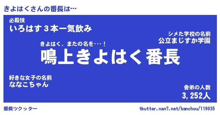 | ピコ太郎風あだ名 | 『キコ十郎』『ピキ八郎』『キヨ三郎』 |