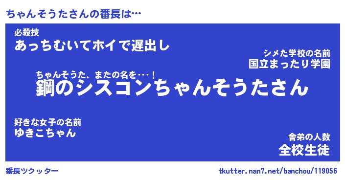 | ヒーロー風カッコイイあだ名 | 『スーパーチャンソウタ』『暗黒騎士チャ』 |