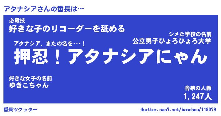 | ファンタジー風あだ名 | 『アタフェル』『エターナルアタナシアー』 |