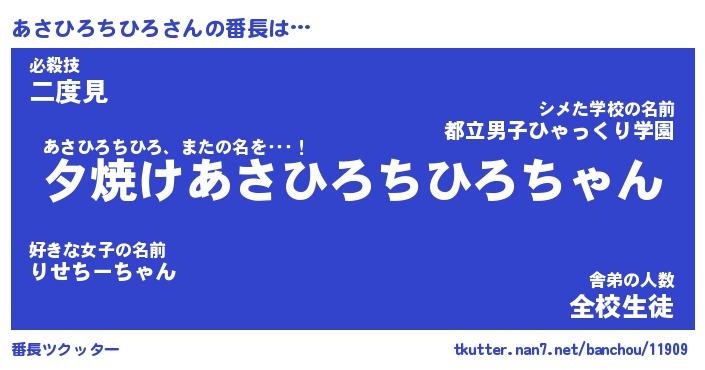 | 伝説のあだ名 | 『封印されしスナイパーあさひろちひろ』 |