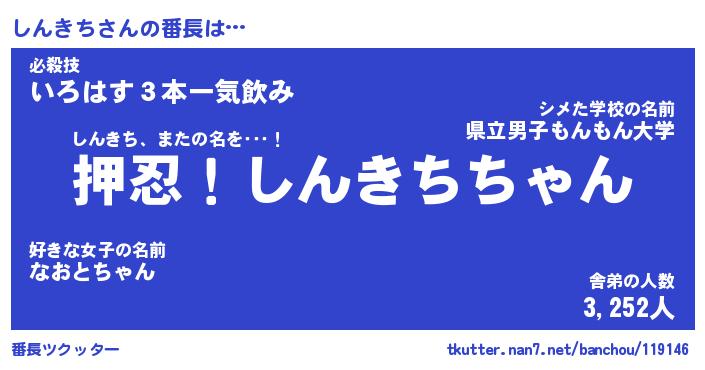 | ヒーロー風カッコイイあだ名 | 『スーパーシンキチ』『黄金騎士シン』 |