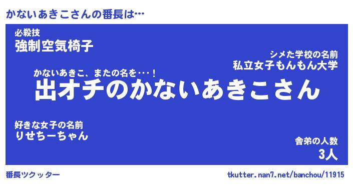 | 伝説のあだ名 | 『伝説のスナイパーかないあきこ』 |
