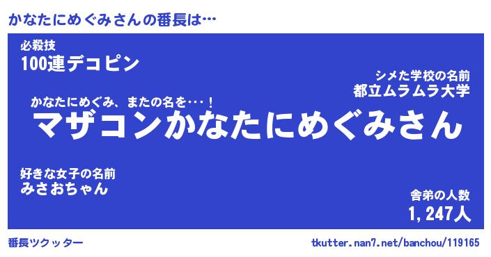 | ヘコむあだ名 | 『かなにー』『なまこ酢』『かなお』 |